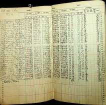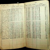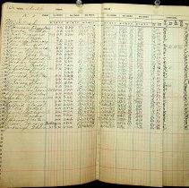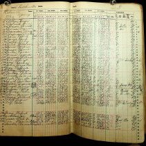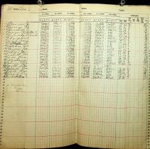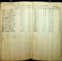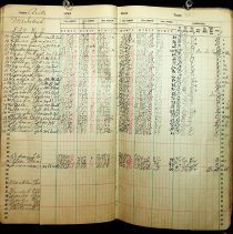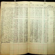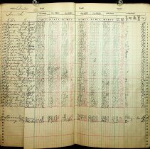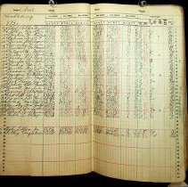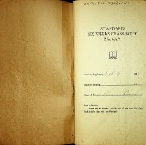 Attendance and grade book for each student in Elizabeth Agnes "Bessie" Brown's 8th grade class at the school on Walnut Street in Washington, Indiana during 1935-1936 school year. The book lists alphabetically each student, his or her daily attendance and grade average. On the inside cover is written "#1150" which is a reference to the Thelma Bingham Books in which Mrs. Bingham wrote: "Donated from the estate of Bessie Brown 84 th." On the front of the green, hard back book is written in red the number 17.