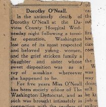 1929 newspaper article about death of Dorothy O'Neall - Clipping, Newspaper