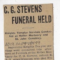 1939 newspaper article about funeral of Carlos G. Stevens - Clipping, Newspaper